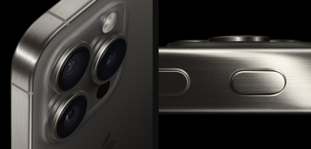 아이폰 사상 최로로 아이폰 15pro에서는 항공 우주 등급 티타늄 디자인을 채택했습니다. 화성 탐사선에 쓰이는 소재와 동일한 합금을 사용하였습니다. 폰을 떨어뜨리는 일이 간혹 있는데 티타늄 소재로써 안정성이 더 좋아졌습니다. 금속 중 비강도가 가장 좋은 티타늄은 무게도 가벼워 내구성과 휴대성을 더욱더 강화시켰습니다.